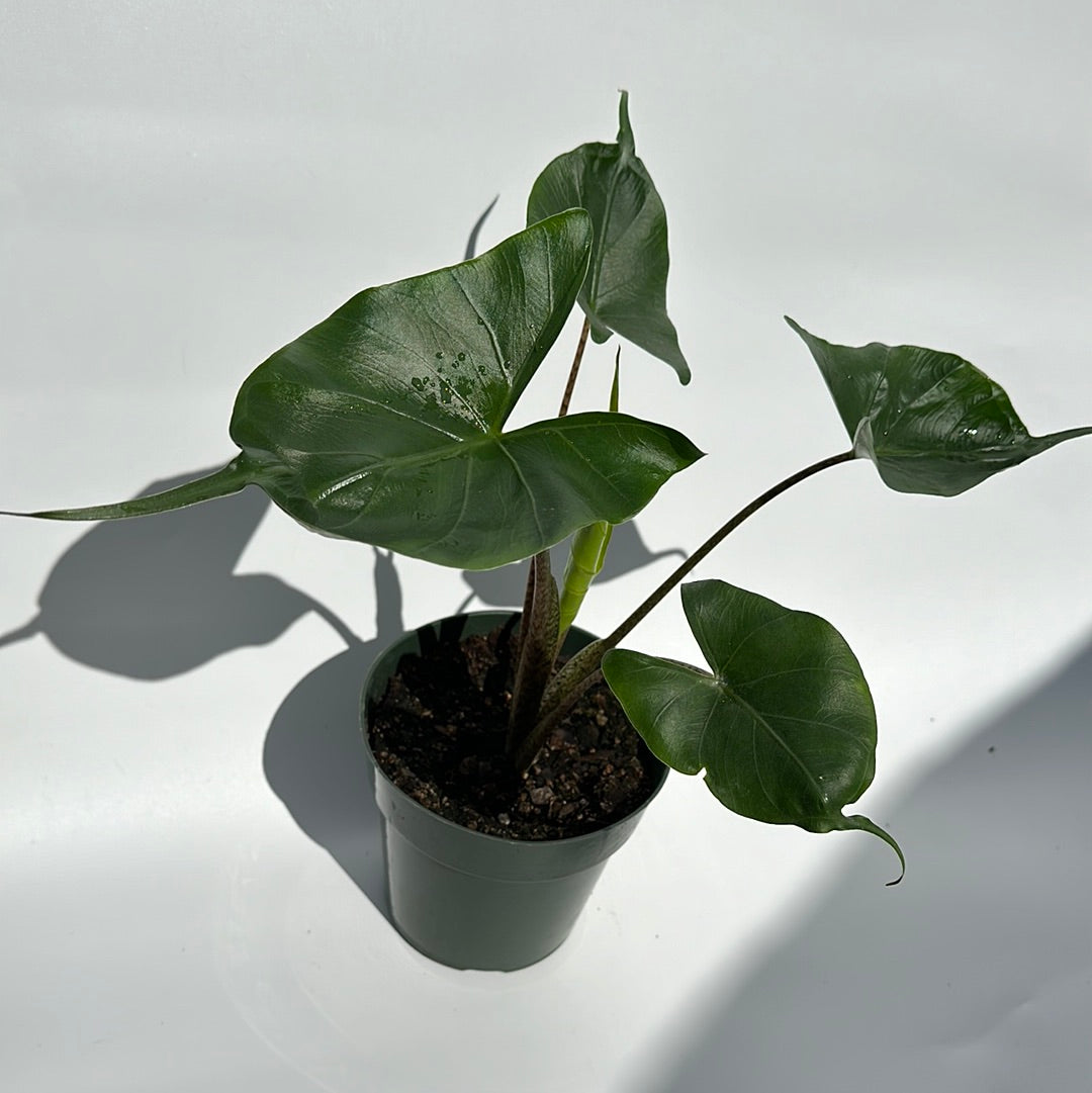 Fast-growing and full of personality, this Alocasia brings a bold, exotic flair to any indoor jungle. With the right conditions, it develops tall, elegant stems and large, dramatic leaves that instantly draw attention.