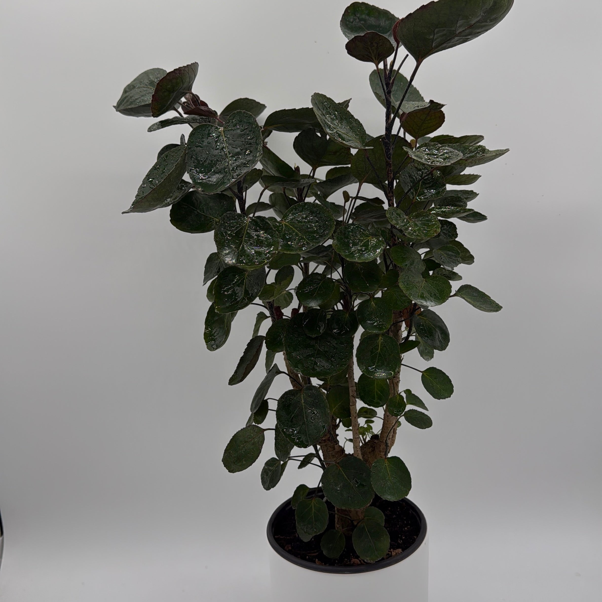 With its sturdy woody trunk and rounded deep-green leaves, the Aralia Fabian brings the elegance of a miniature indoor tree into your home. Its upright, sculptural growth habit makes it a natural statement piece, adding both greenery and structure to modern interiors.