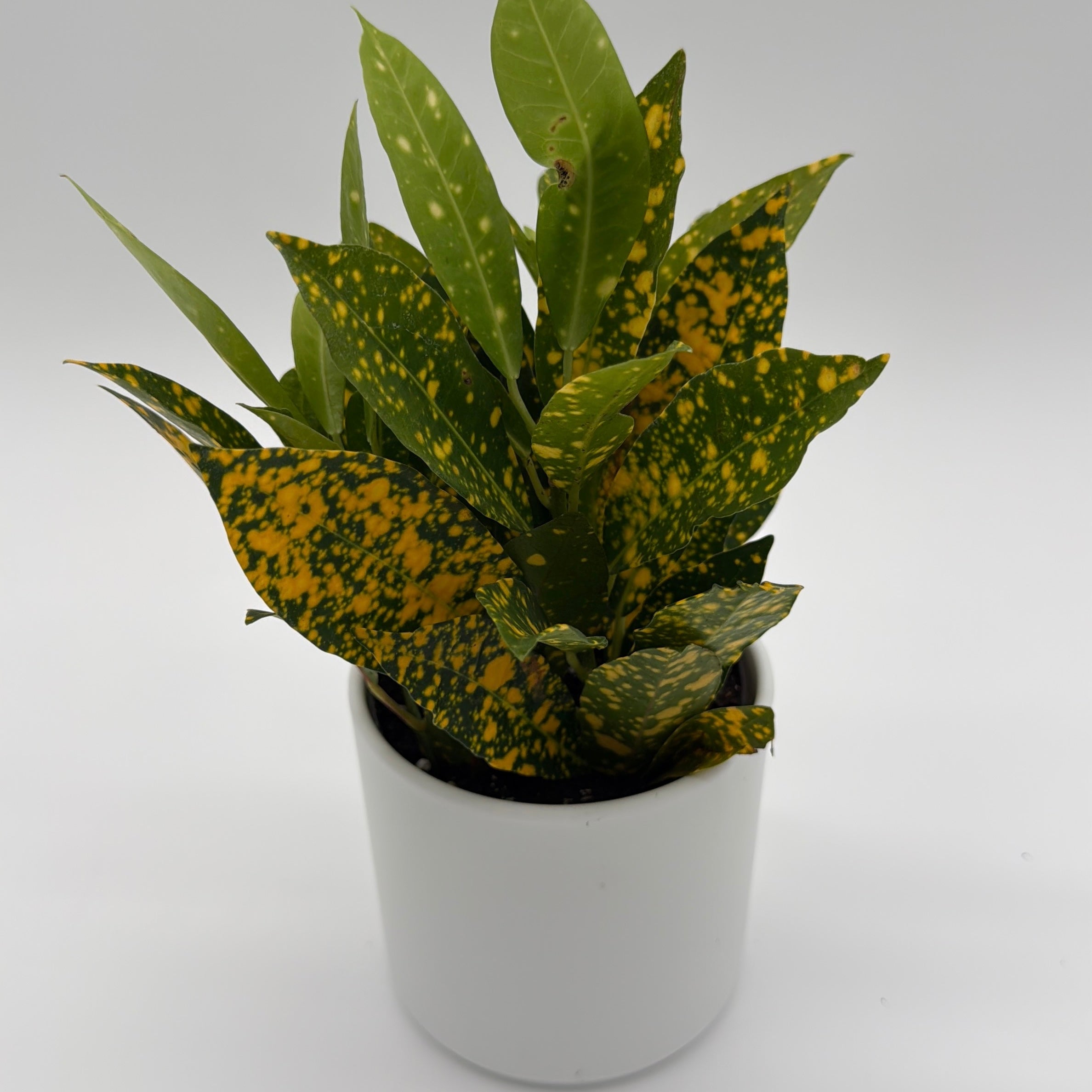 Bold, cheerful, and full of sunshine — the Croton ‘Golden Dust’ is a vibrant foliage plant loved for its glossy green leaves splashed with bright yellow speckles that look like flecks of gold. Each leaf is uniquely patterned, creating a lively, confetti-like effect that instantly energizes any space.