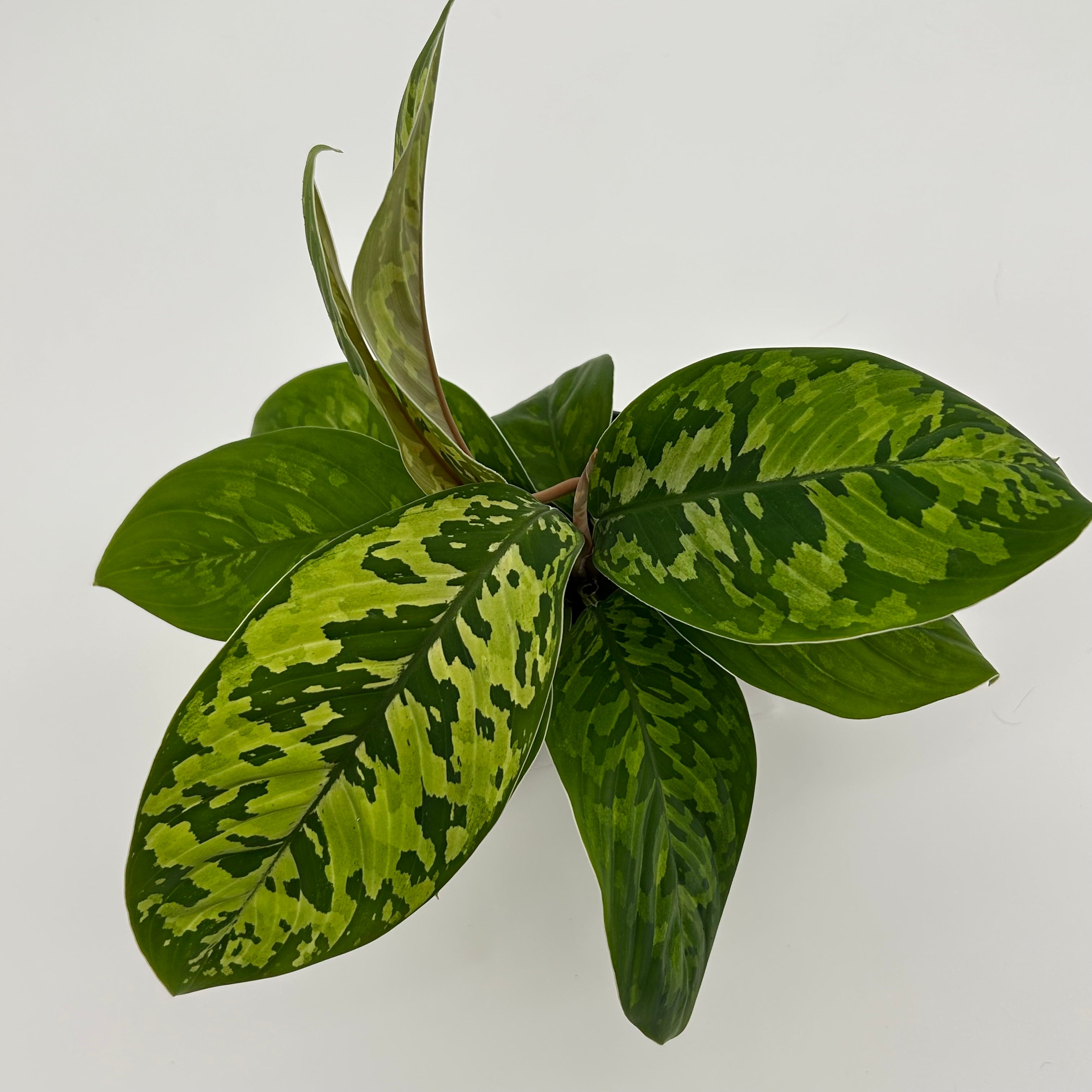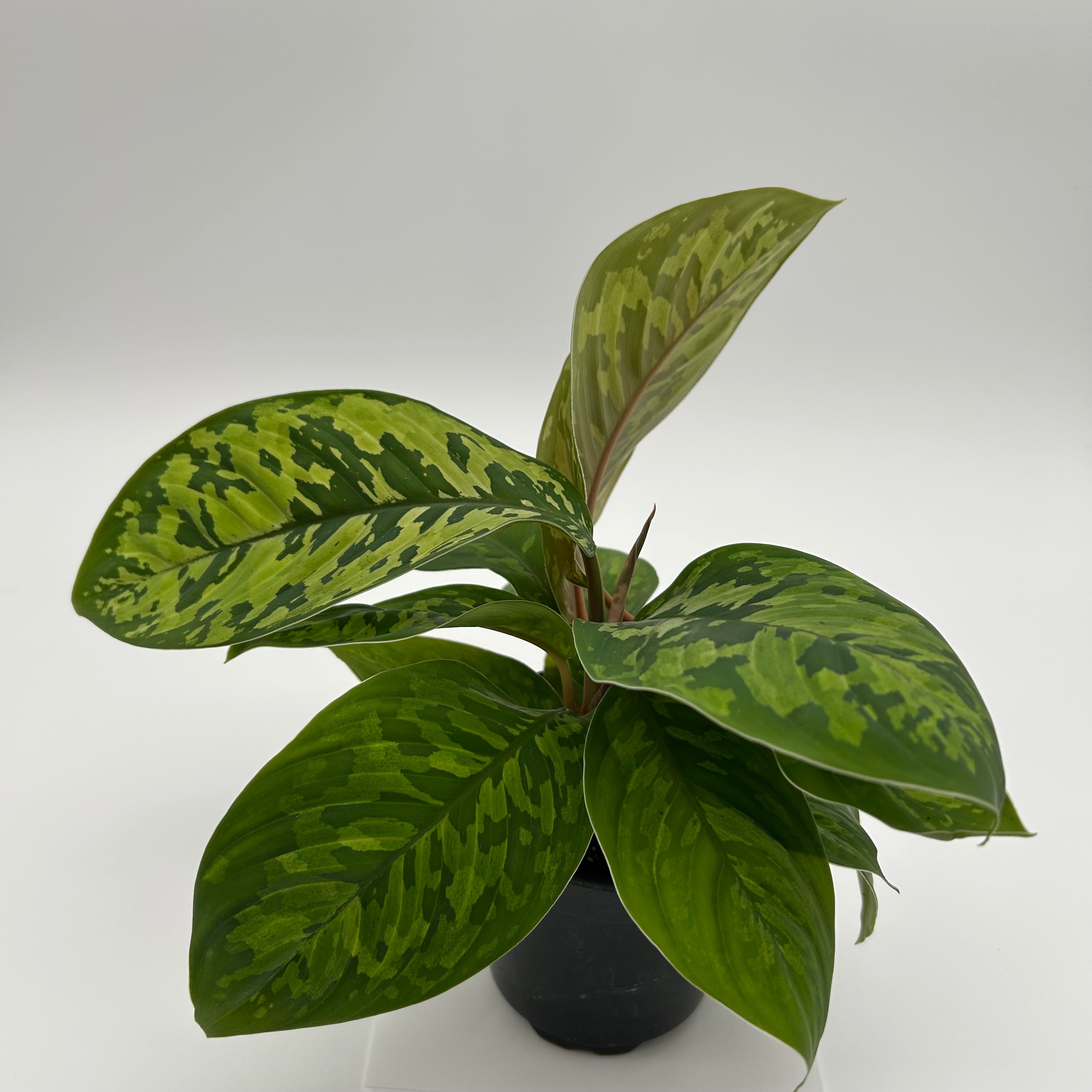 The Homalomena CamouflageΒ is a stunning tropical plant admired for its bold, patterned foliage that resembles jungle camouflage. Each broad, glossy leaf features a mix of deep and light green marbling, creating a lush, natural texture that feels both exotic and grounding.