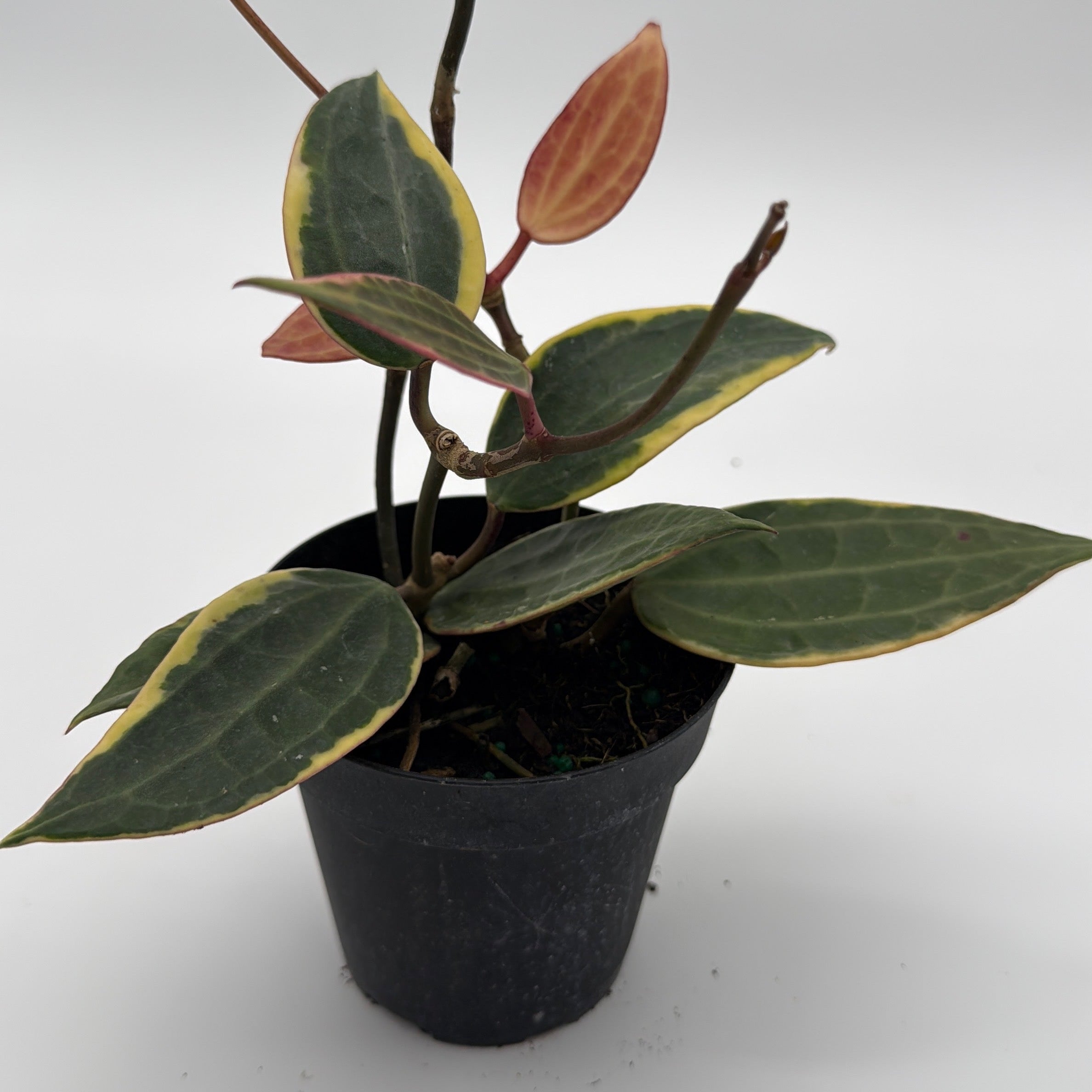 This vining Hoya combines dramatic scale with elegant color, making it a standout in hanging planters or trained along a trellis. Slow to moderate in growth but long-lived, itβs a favorite among collectors who love statement foliage with classic Hoya resilience. With patience, it may also reward growers with clusters of sweetly fragrant, star-shaped blooms.