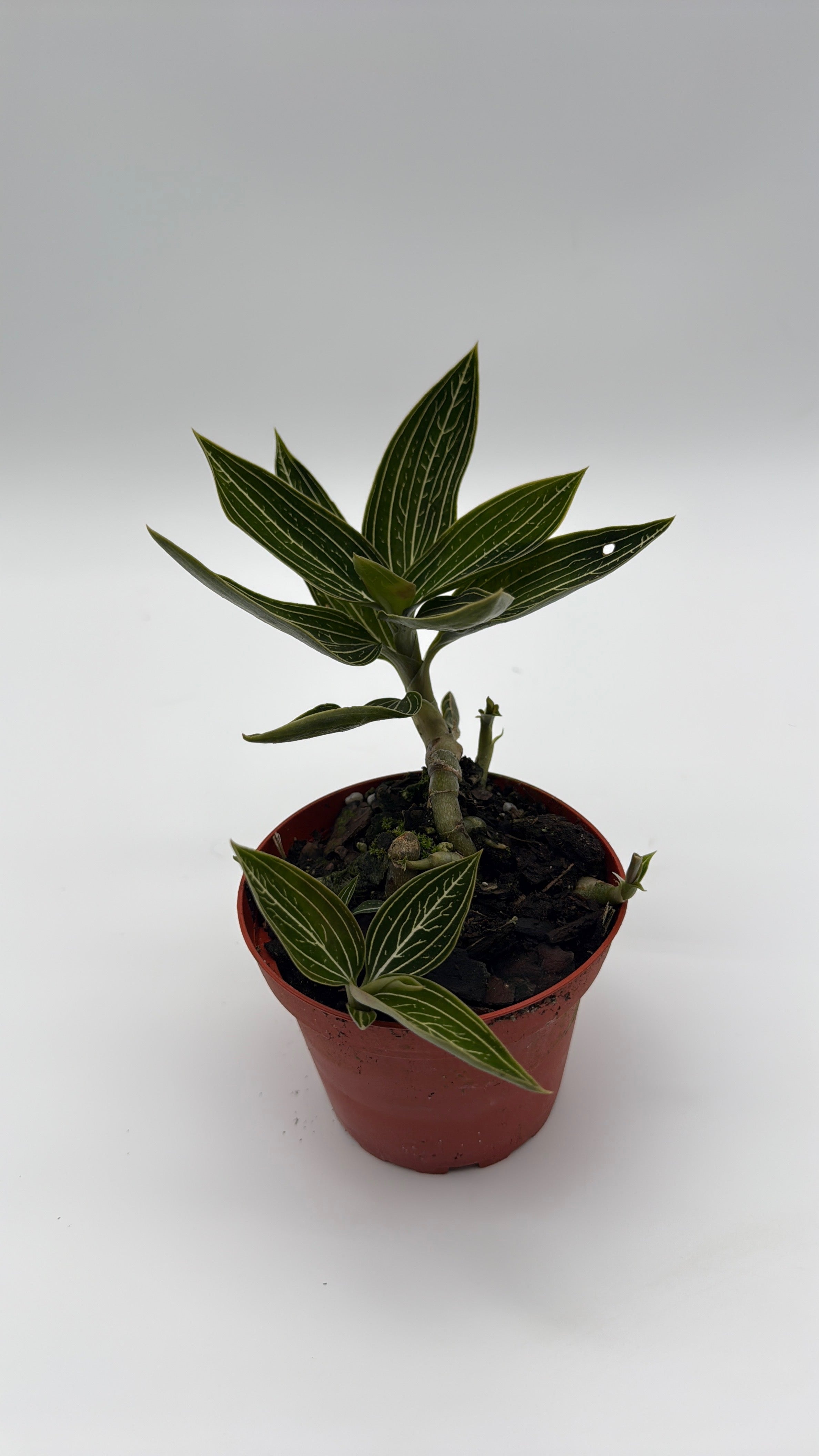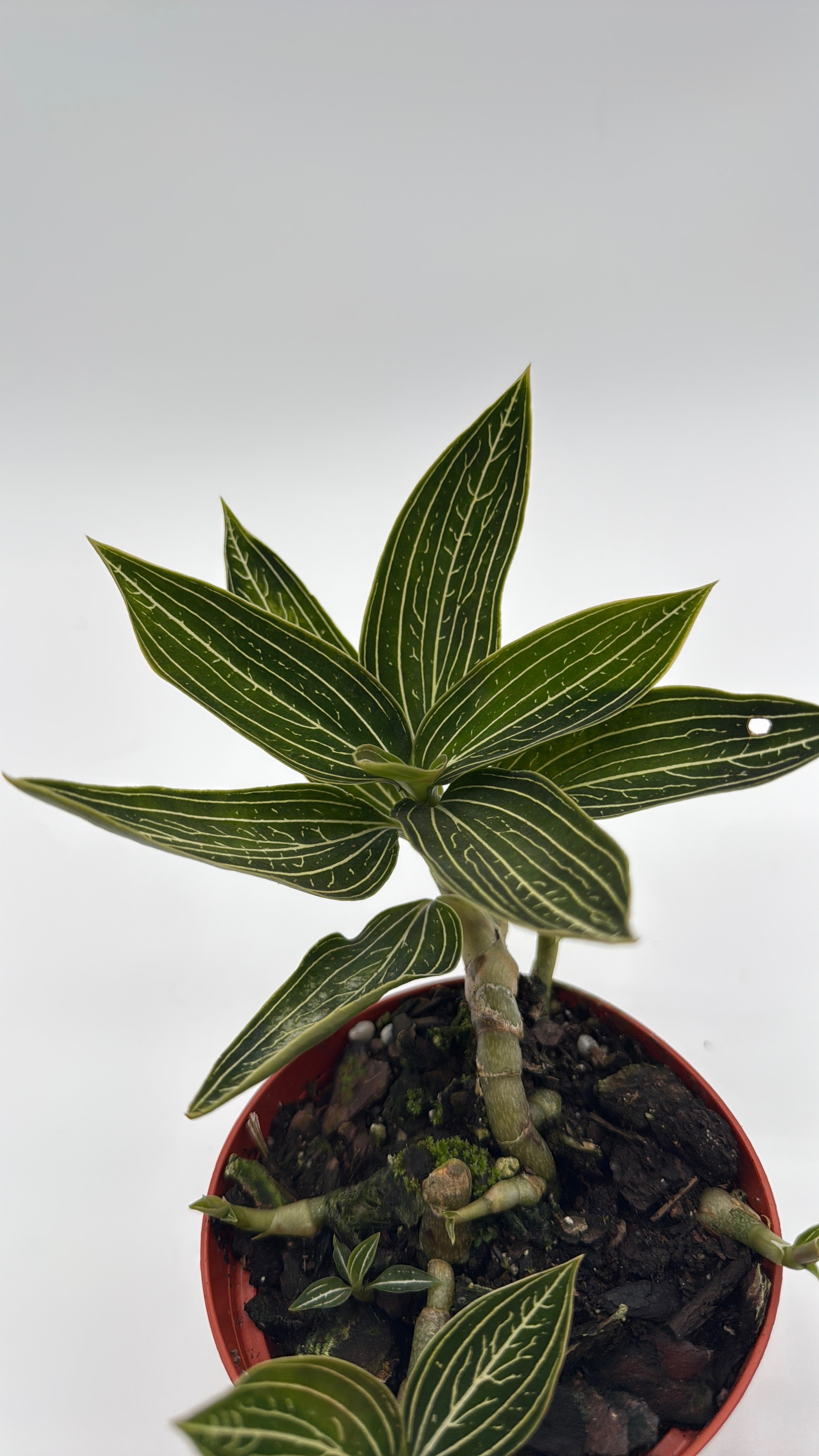 Compact and low-growing, this jewel orchid brings an ethereal glow to any plant shelf or terrarium. It’s beginner-friendly, thrives in lower light, and rewards you with delicate white blooms once a year. A true collector’s gem that’s as magical as its name.