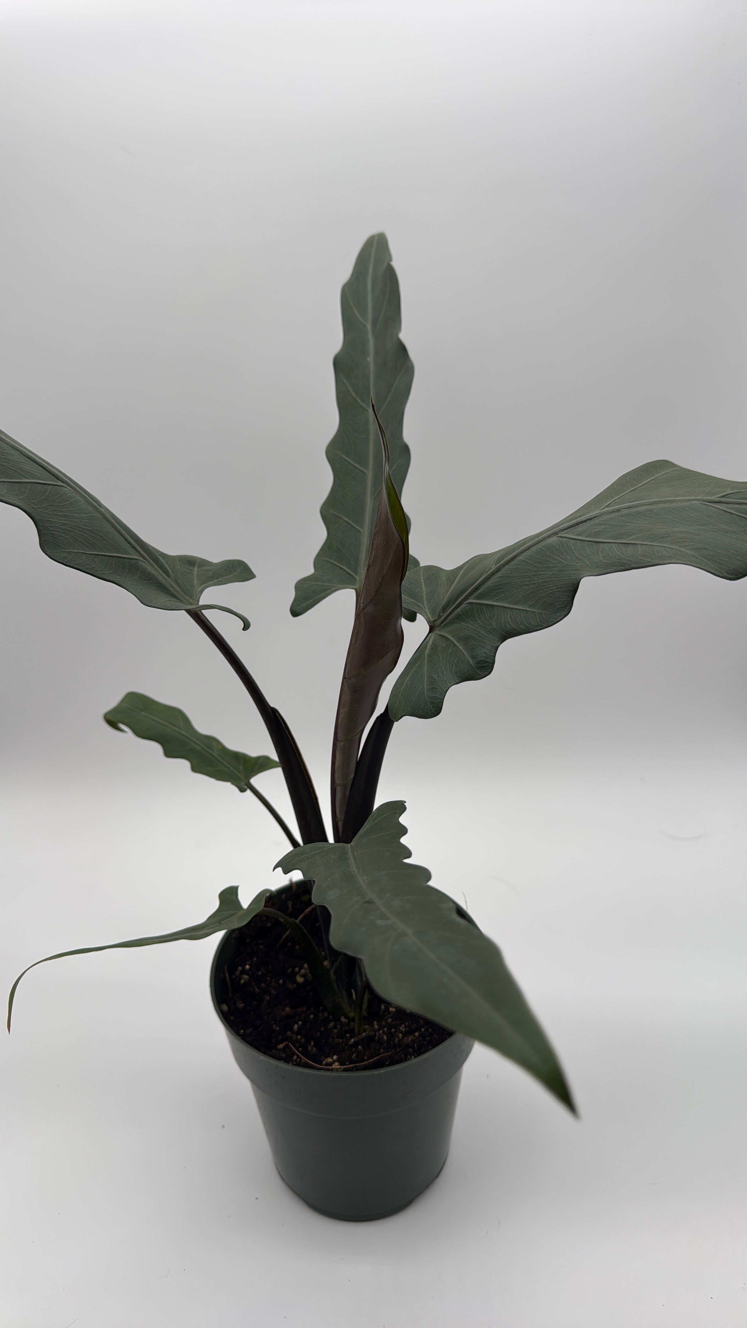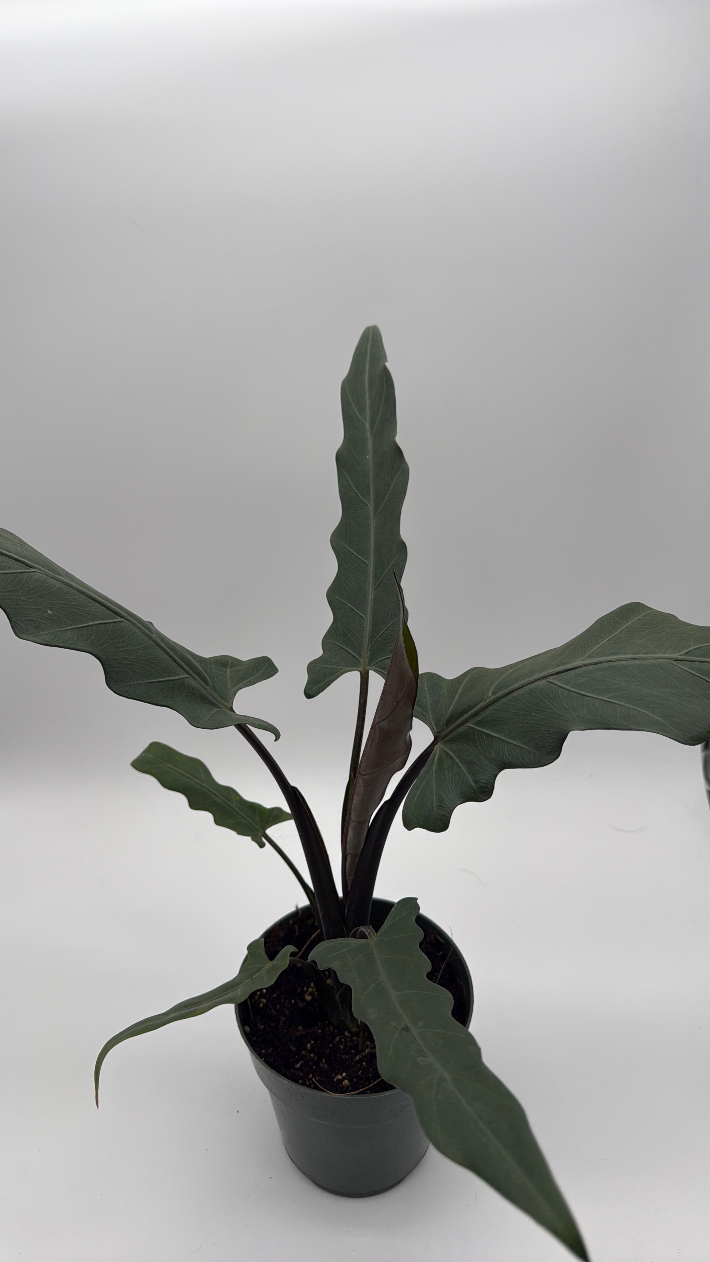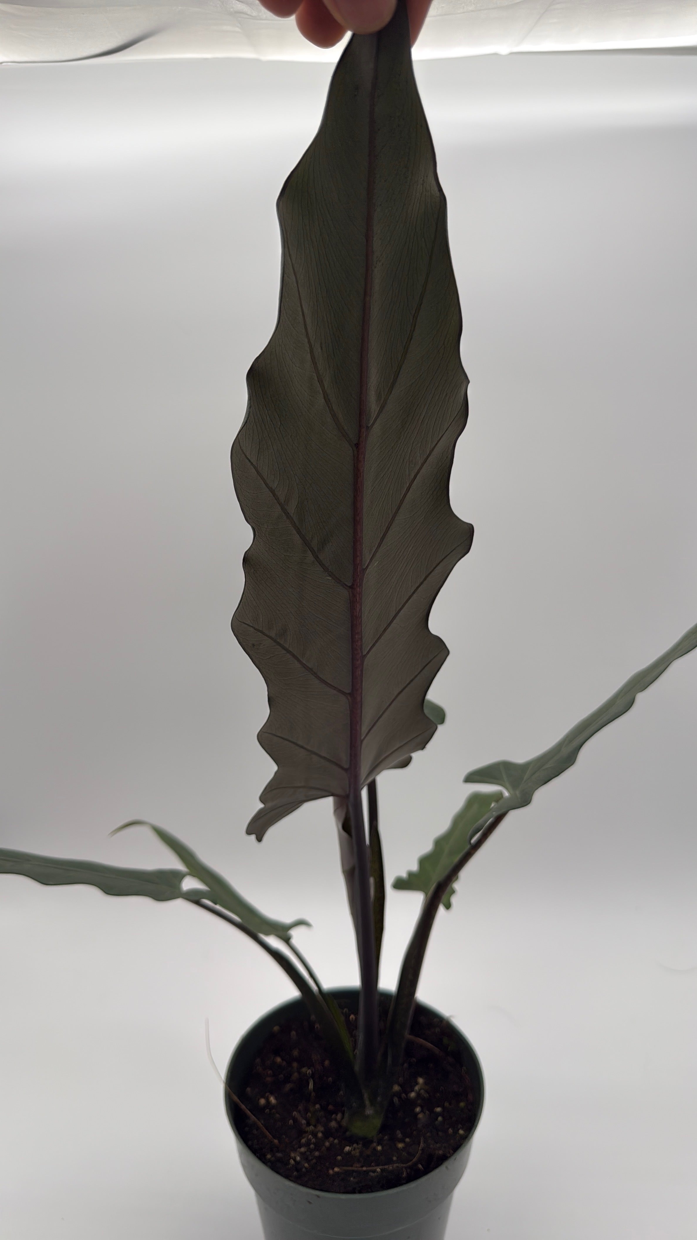 Dramatic and futuristic, Alocasia ‘Purple Sword’ is a true statement plant. Its long, narrow leaves taper to sharp points and flash a deep forest green on top — while the backs reveal a bold metallic purple sheen. The contrast gives this plant a sculptural, almost otherworldly presence that instantly elevates any room.
