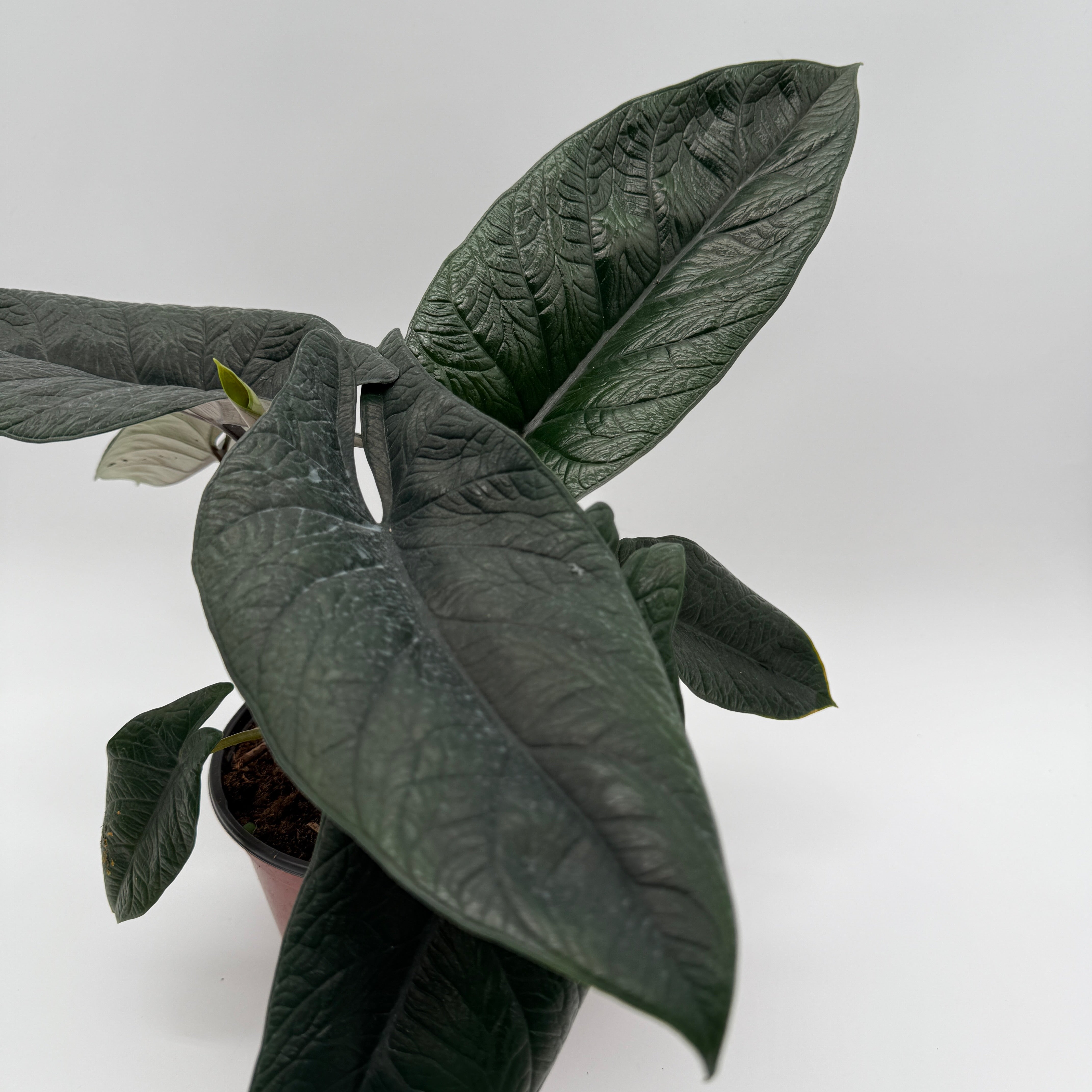 Compact yet commanding, this uncommon Alocasia is perfect for collectors craving something exotic and visually striking without being overly demanding. Its upright growth habit and glossy, intricate leaf pattern make it a captivating focal point for side tables, plant shelves, or curated aroid displays.