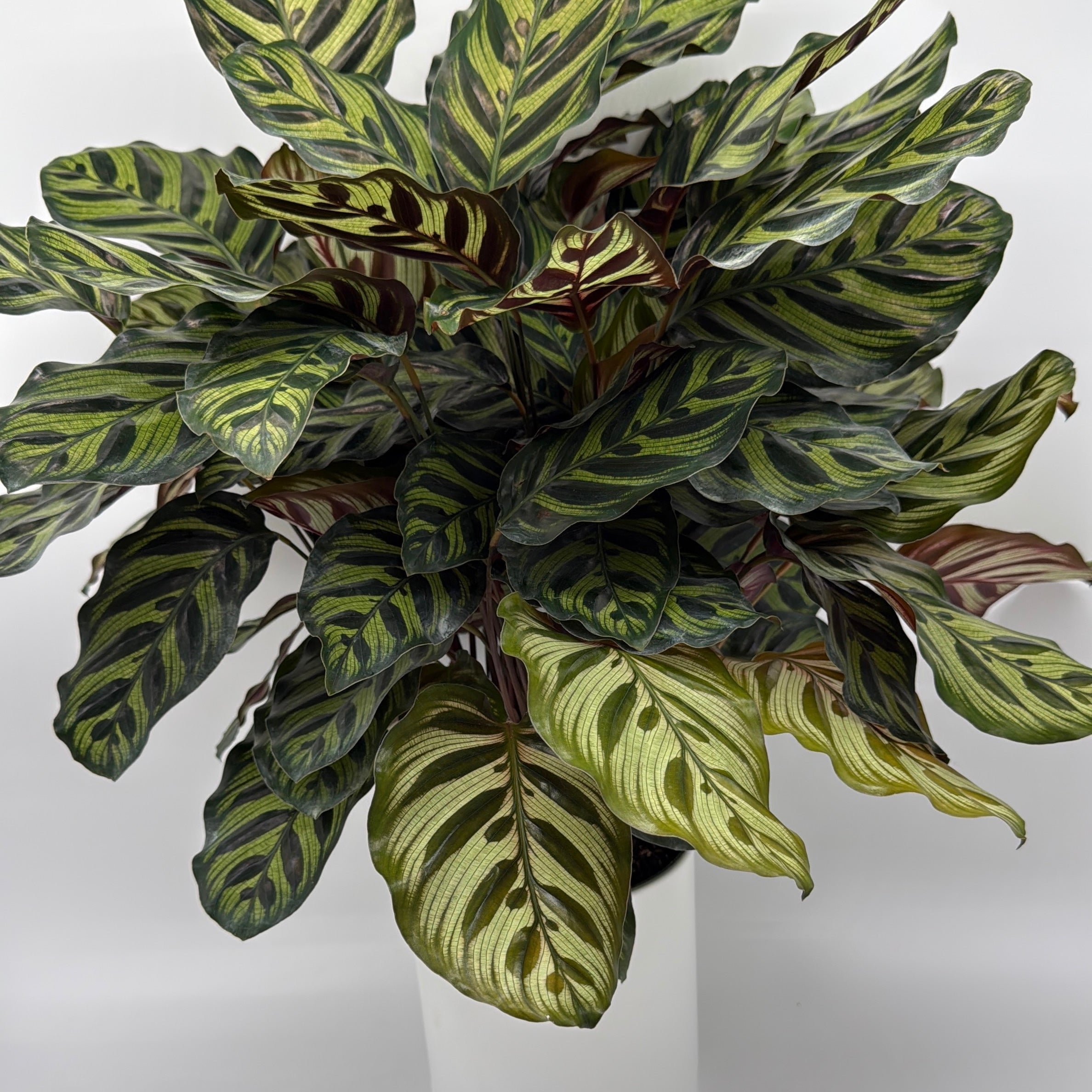 With its bold patterns and vibrant contrast, the Calathea Makoyana makes a stunning statement plant for your home or office.