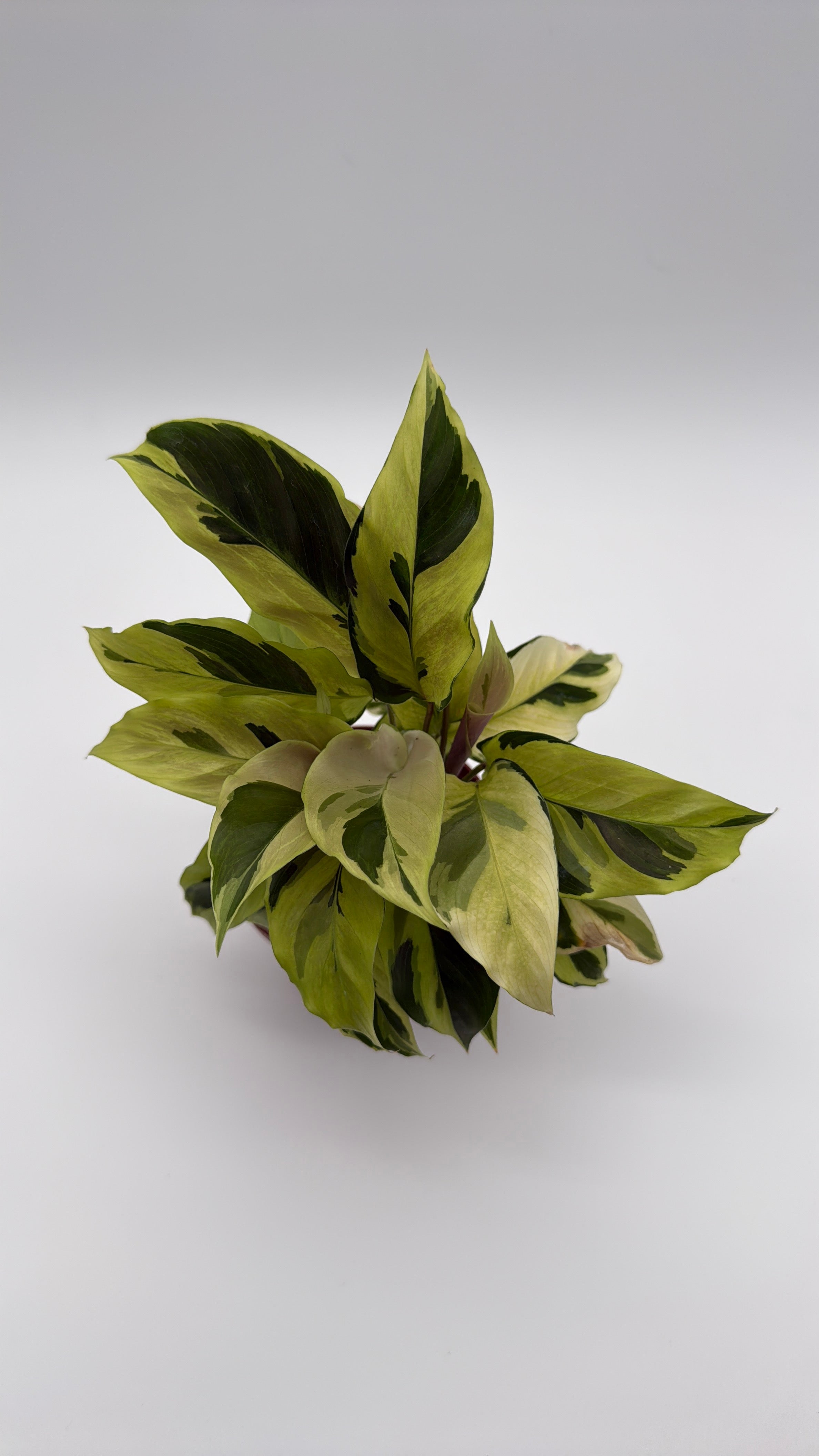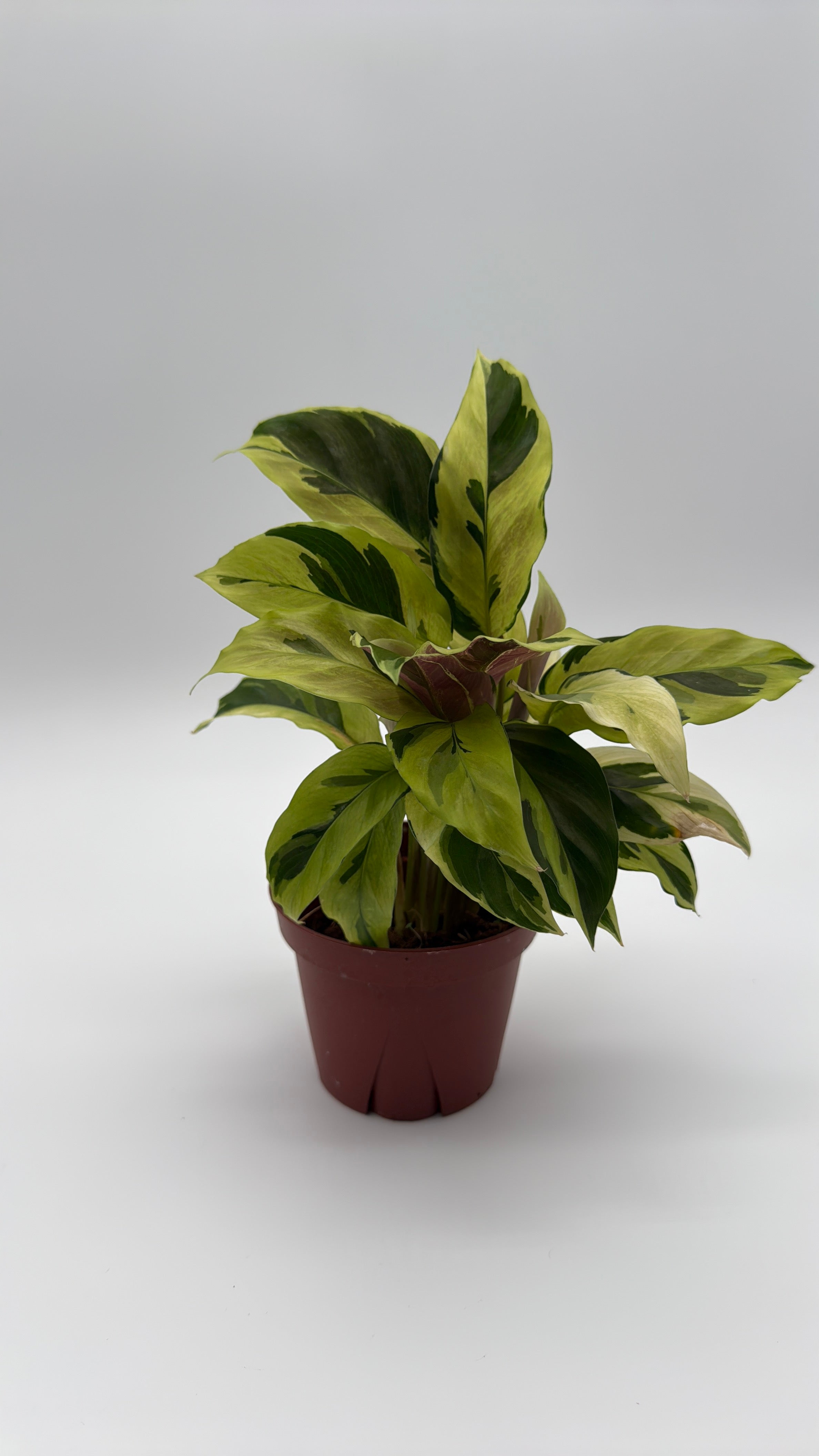 Vibrant and full of personality, the Calathea ‘Yellow Fusion’ is a tropical showpiece that turns any room into a living art gallery. Its lush leaves are marbled with swirls of lime green, yellow, and cream — a stunning contrast against soft lavender undersides. Each leaf is uniquely patterned, creating a one-of-a-kind look that feels both wild and elegant.