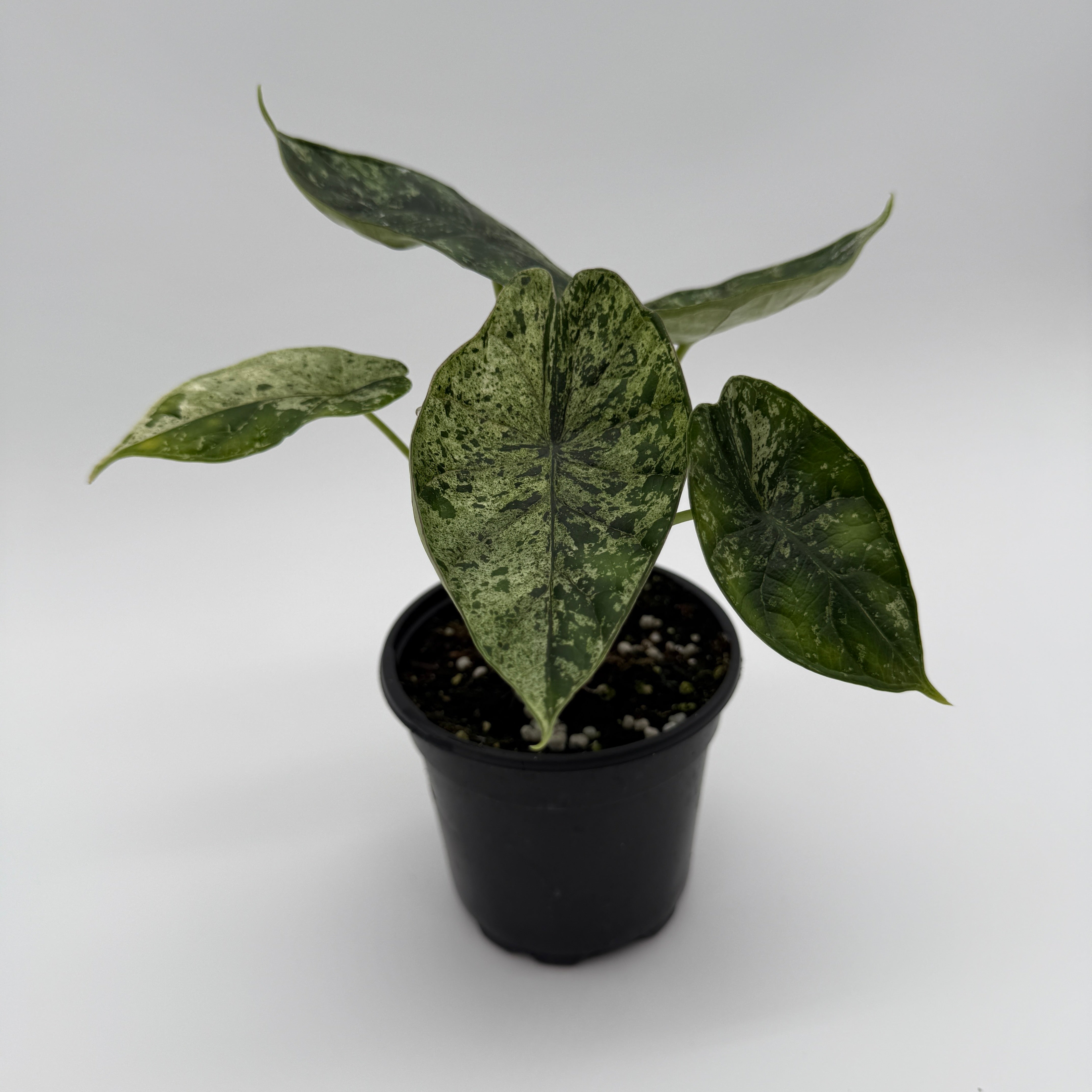 Striking, sculptural, and undeniably rare — the Variegated Alocasia Baginda is a breathtaking twist on the beloved “Dragon Scale.” This exceptional form features mesmerizing silvery-green leaves overlaid with deep veining and splashes of creamy white or soft yellow variegation that make every leaf a true collector’s piece.